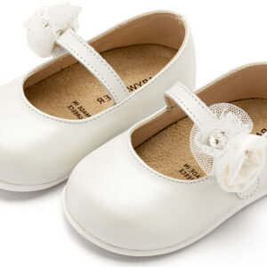 | Δερμάτινο Γοβακι Μονή Μπαρέτα με Χειροποίητο Διακοσμητικό με Λουλούδια στο πλάι από Δέρμα Πέρλα σε Εκρού Χρώμα |
