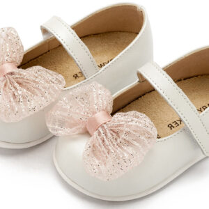 | Δερμάτινο Γοβακι Μονή Μπαρέτα με Χειροποίητο Υφασμάτινο Φιόγκο από Δέρμα Πέρλα σε Εκρού Ροζ Χρώμα |
