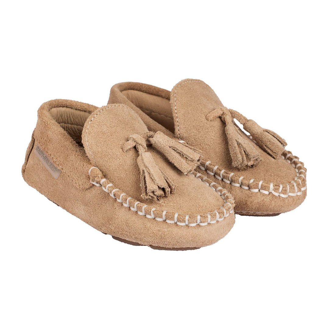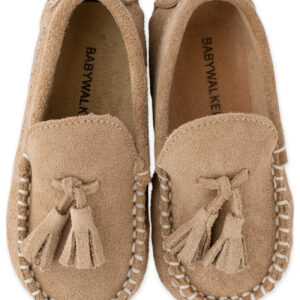 Καστόρινο Μοκασίνι με Φουντάκια από Δέρμα Κρούτα Suede σε Μπεζ Χρώμα