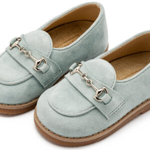 Καστόρινο Loafers με Μεταλλική Αγράφα σε Ανοιχτό Σιέλ Χρώμα