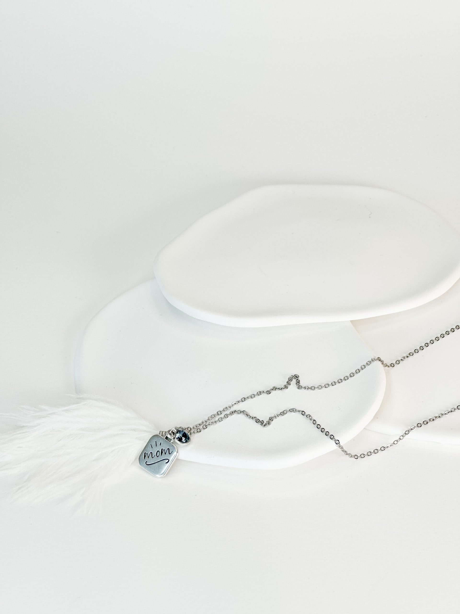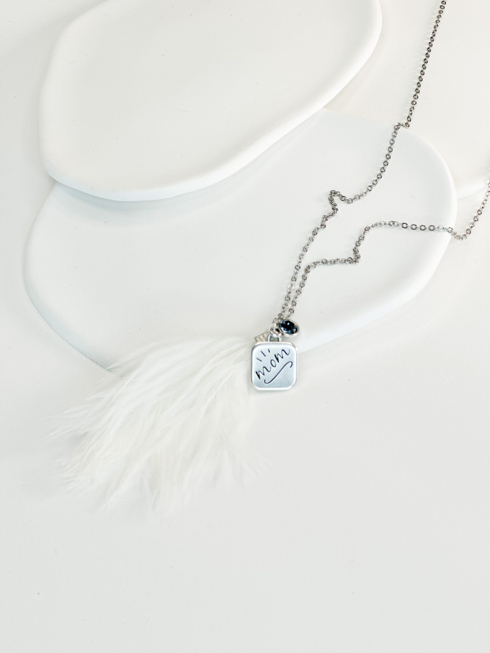 Κολιέ για την μαμά με φτερό και σβαρόφσκι. Οι φωτογραφίες έχουν υποστεί επεξεργασία, ίσως να διαφέρουν λίγο τα χρώματα στην πραγματικότητα.