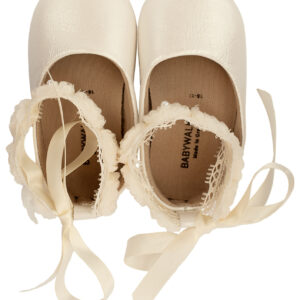 Μπαλαρινα με Δέσιμο στον Αστραγαλο απο Chiffon Λουλούδια σε Εκρού