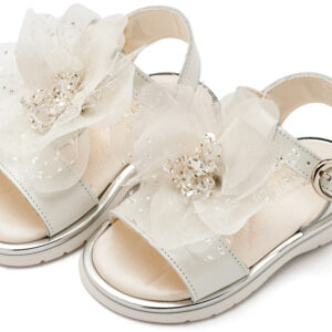 Δερμάτινο Πέδιλο με Χειροποίητο Λουλούδι απο Τούλι σε Εκρού Χρώμα