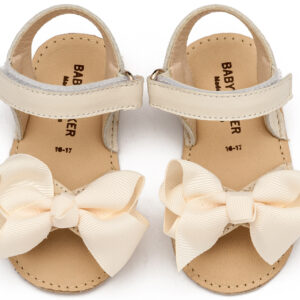 Δερμάτινο Πέδιλο με Φιόγκο Gros Grain σε Εκρού Χρώμα