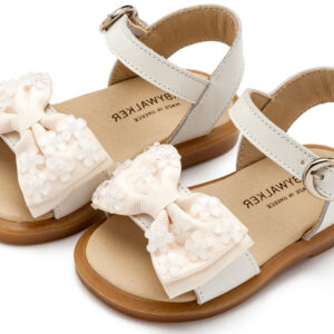 Δερμάτινο Πέδιλο με Gros Grain Φιογκάκι και Λουλουδάκια σε Εκρού Χρώμα
