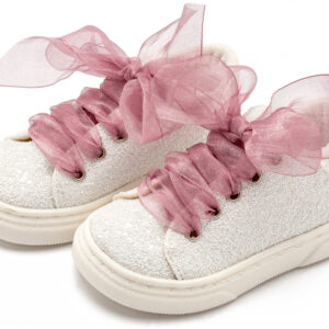 Sneaker απο Ύφασμα Glitter με Κορδέλα Οργάντζα σε Λευκό Ροζ Αντικέ Χρώμα