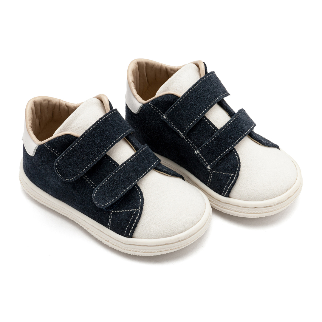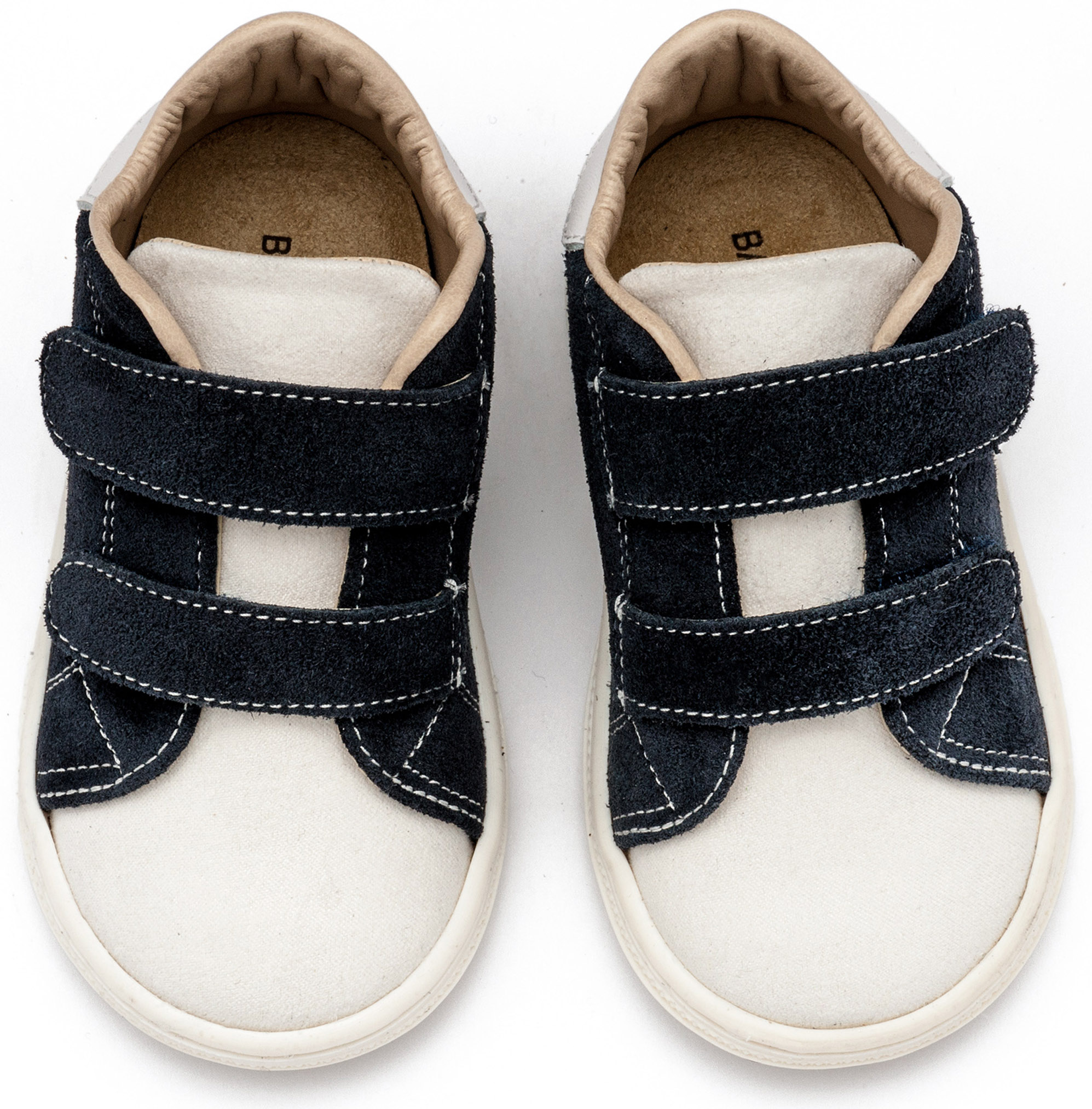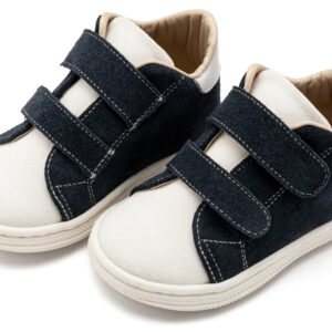 Σνίκερ από Δέρμα και Ύφασμα με Διπλή Μπαρέτα Χρατς σε Λευκό Μπλέ Χρώμα