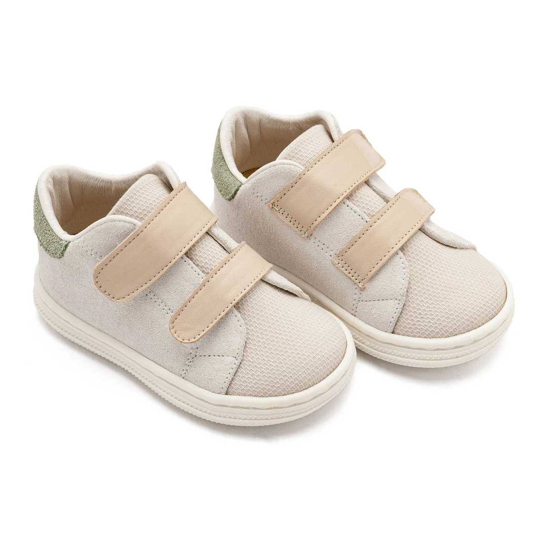 Σνίκερ από Δέρμα και Ύφασμα με Διπλή Μπαρέτα Χρατς σε Λευκό Μπεζ Χρώμα