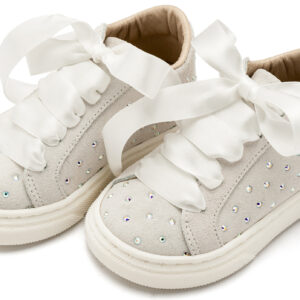Δετό Σνίκερ από Suede Δέρμα Διακοσμημένο με Στρας Swarovski σε λευκό Χρώμα