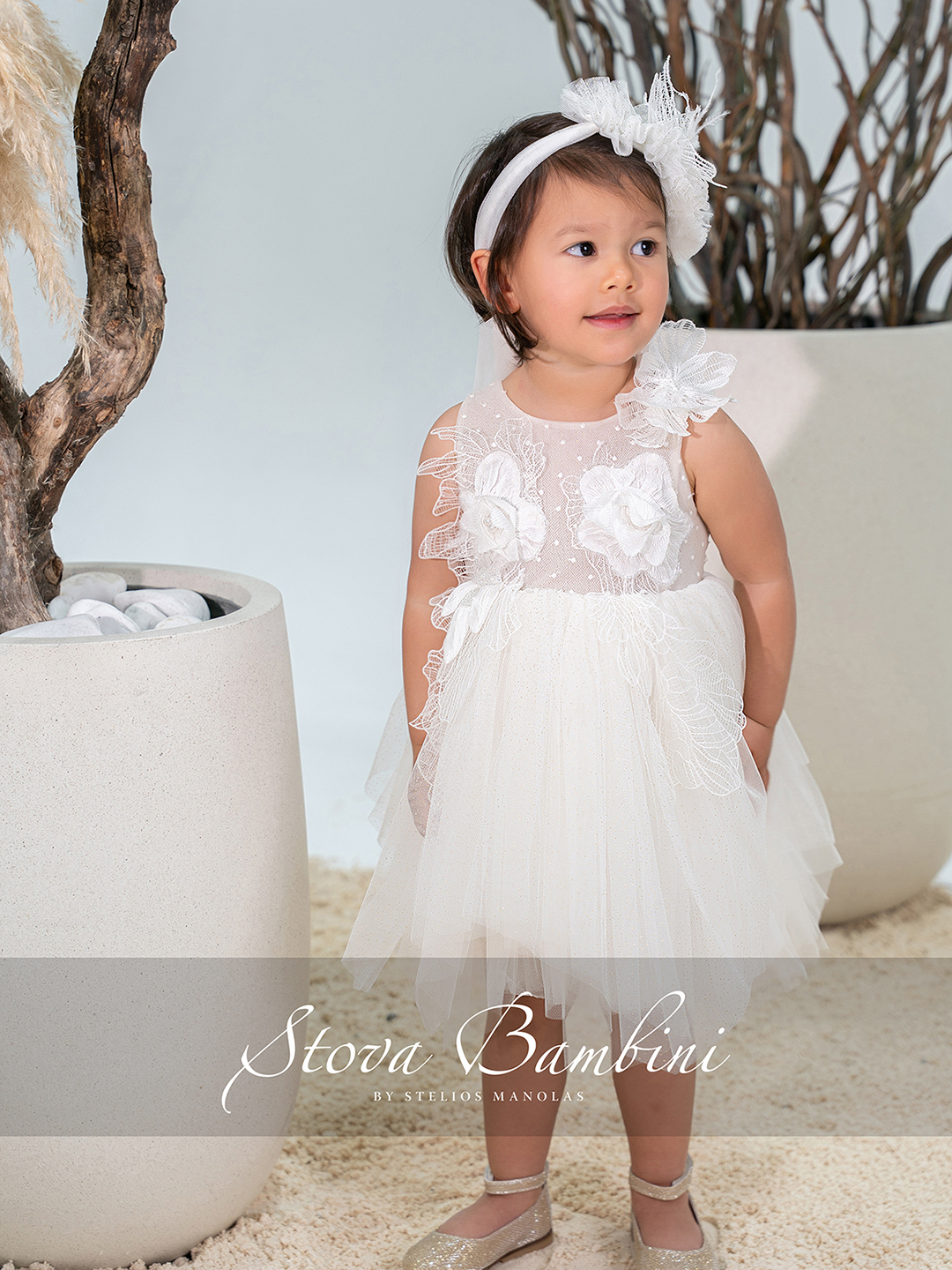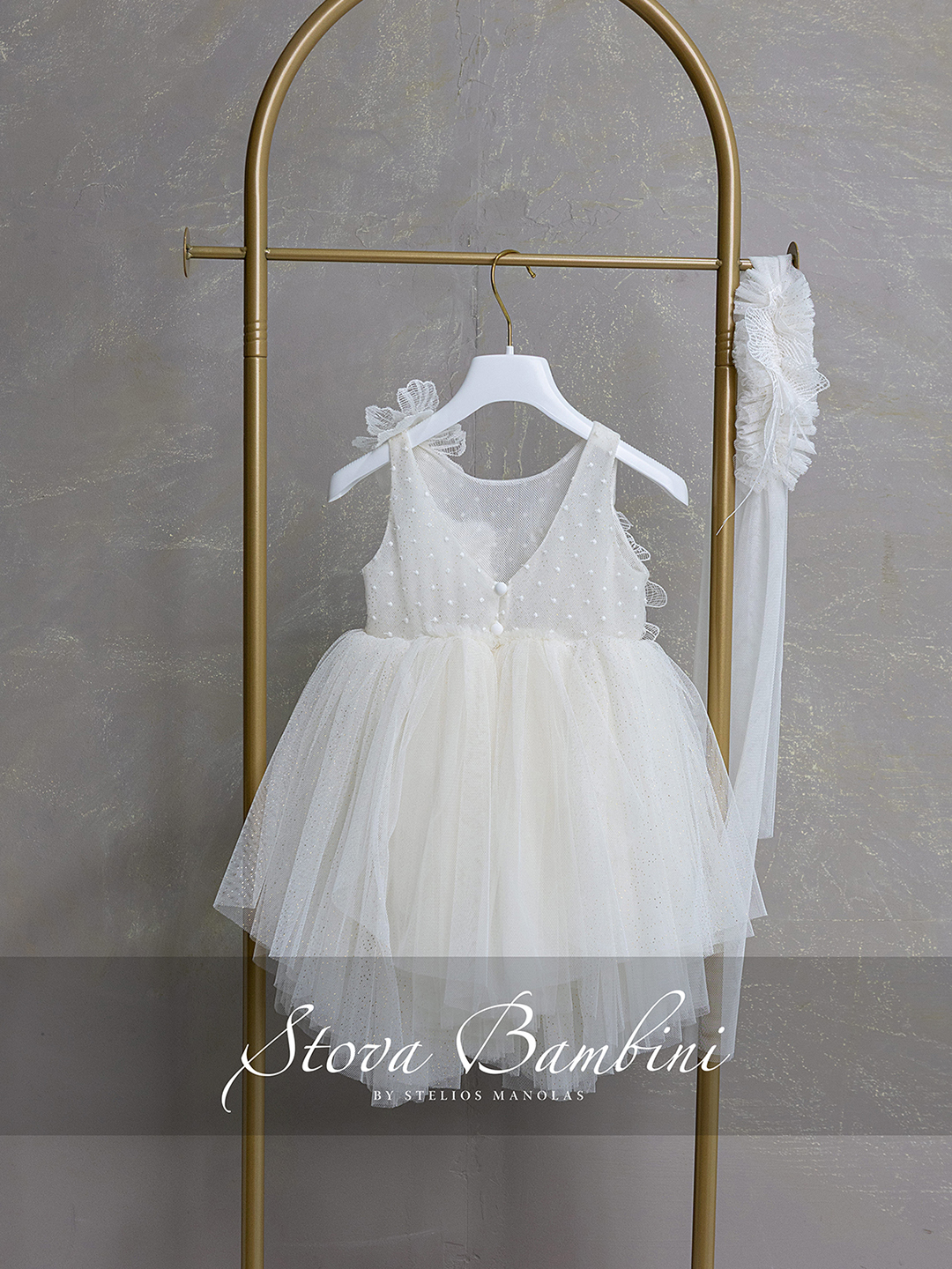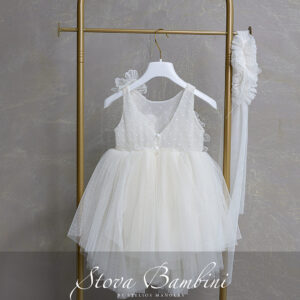 Εντυπωσιακό και ρομαντικό φόρεμα σε εκλεπτυσμένη ivory απόχρωση, σχεδιασμένο για να μαγνητίζει τα βλέμματα με τη μοναδική του αισθητική. Το μπούστο από φίνο πουά τούλι συνδυάζεται αρμονικά με περίτεχνα, χειροποίητα λουλούδια και δαντελένια φύλλα, δημιουργώντας ένα τρισδιάστατο αποτέλεσμα γεμάτο κομψότητα και φινέτσα. Η αέρινη φούστα από πολυτελή τούλια Ιταλίας-Ισπανίας, διακοσμημένη με διακριτικές shimmer λεπτομέρειες, χαρίζει κίνηση και λάμψη σε κάθε βήμα, ενώ η ασύμμετρη ροή της προσθέτει έναν ιδιαίτερο, σύγχρονο χαρακτήρα στο σύνολο. Η λεπτομέρεια στον έναν ώμο (χειροποίητο λουλούδι Ιταλίας) ολοκληρώνει το σχέδιο με μία ρομαντική πινελιά υψηλής αισθητικής. Όλα τα φορέματα διαθέτουν εσωτερική επένδυση 100% Cotton για απόλυτη άνεση.