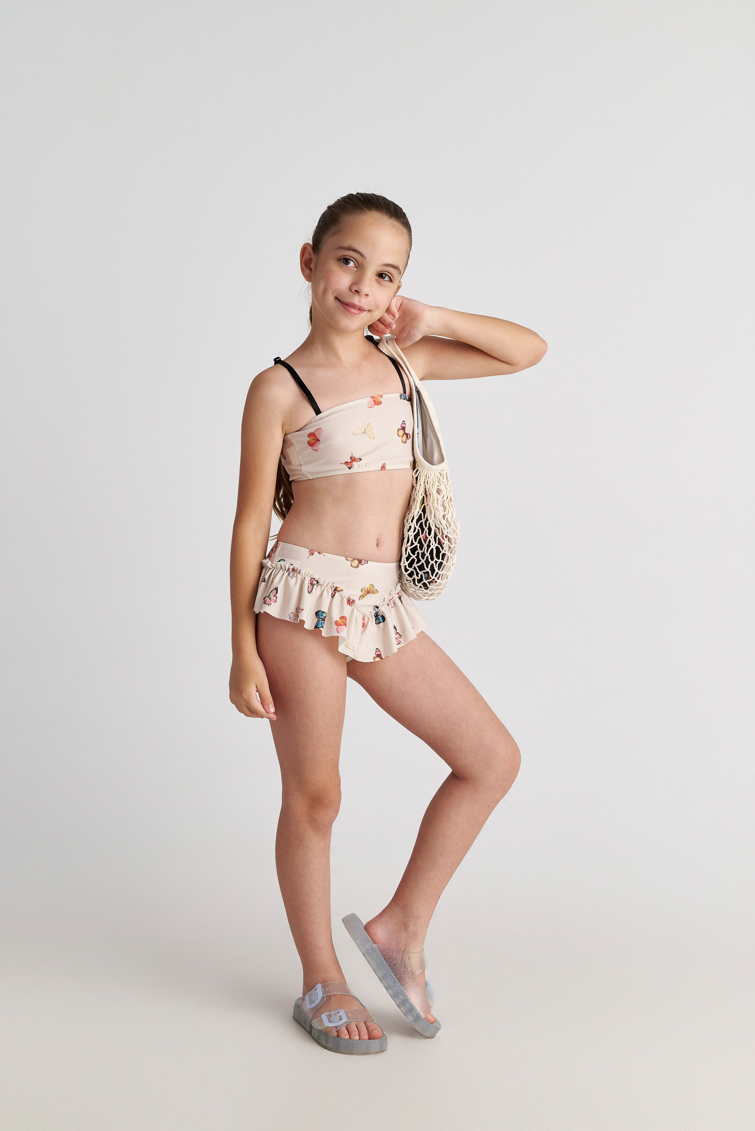 Εκρού μαγιό μπικίνι, με πεταλούδες.