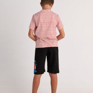 Μοντέρνο και άνετο σετ παιδικού αγοριού, ιδανικό για casual εμφανίσεις και δραστήριες ημέρες. Το σετ περιλαμβάνει ριγέ top με παιχνιδιάρικο σχέδιο και μακρύ σορτς με λογότυπο, που προσφέρει στυλ και πρακτικότητα σε κάθε κίνηση.