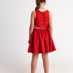 Το παιδικό φόρεμα Ruby από φυσικό ramie συνδυάζει κομψότητα και άνεση σε ένα σύγχρονο καλοκαιρινό σχέδιο. Το δροσερό και ανθεκτικό ύφασμα προσφέρει ευχάριστη αίσθηση στο σώμα, ενώ τα διακριτικά πλαϊνά cut-out χαρίζουν μοντέρνο χαρακτήρα χωρίς να χάνεται η παιδική φινέτσα.