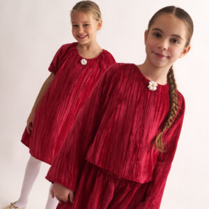 Ανανεώστε το στυλ σας με αυτό το υπέροχο βελούδινο σετ σε εντυπωσιακή fuchsia απόχρωση. Το σετ αποτελείται από μακριά μπλούζα με ελαφρώς φαρδιά μανίκια και άνετη παντελόνα wide leg με λάστιχο στη μέση για τέλεια εφαρμογή και άνεση.