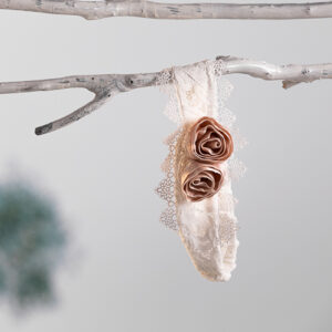 Φόρεμα δαντέλα με υπέροχη κίνηση και εντυπωσιακή κλος ασύμμετρη φούστα. Το κορσάζ του φορέματος διακοσμείται περιμετρικά με δαντελένια τρέσα και η πλάτη με κορδόνι χιαστί. Το ντεκόρ του φορέματος αποτελείται από χειροποίητα ροζ λουλούδια και τούλινη ζώνη που δένει στο πίσω μέρος με φιόγκο. Συνοδεύεται από κλειστή ελαστική κορδέλα για τα μαλλιά από δαντέλα με το ντεκόρ του φορέματος. Σετ 2 τεμαχίων. *Το φόρεμα μπορεί να συνδυαστεί και με ψάθινο καπέλο. Η τιμή ισχύει για τα μεγέθη έως 24 μηνών.