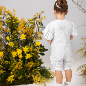 Μπροντερί λευκή σαλοπέτα σε απίθανη γραμμή με τσέπες εμπρός και πίσω. Συνοδεύεται από κλειστή ελαστική κορδέλα για τα μαλλιά με 3 χειροποίητα εντυπωσιακά λουλούδια. Σετ 2 τεμαχίων. Το πουκάμισο πωλείται ξεχωριστά, κωδ.6224. Η τιμή ισχύει για τα μεγέθη έως 24 μηνών.
