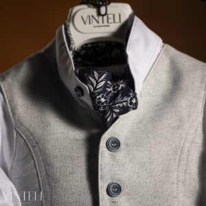 Trois-pièces με μπεζ ψαροκόκκαλο γιλέκο, λευκό βαμβακερό πουκάμισο και aqua παντελόνι. Συνοδεύεται από παπιγιόν σε aqua απόχρωση, μπεζ τιράντες στο ύφασμα του γιλέκου με κουμπώματα ιβουάρ δερματίνης και ψάθινο καβουράκι. Σετ 6 τεμαχίων. Η τιμή ισχύει για τα μεγέθη έως 24 μηνών. * Διαθεσιμότητα έως εξαντλήσεως των αποθεμάτων