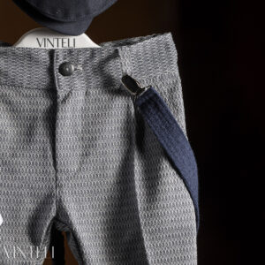 Trois-pièces με floral ραφ γιλέκο, λευκό βαμβακερό πουκάμισο και ραφ παντελόνι. Συνοδεύεται από παπιγιόν στο ύφασμα του παντελονιού, υφασμάτινη ζώνη σε μπλε απόχρωση με κουμπώματα μπλε δερματίνης και γκρι ψάθινο καβουράκι. Σετ 6 τεμαχίων. Η τιμή ισχύει για τα μεγέθη έως 24 μηνών. * Διαθεσιμότητα έως εξαντλήσεως των αποθεμάτων