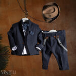 Trois-pièces με ταμπά γιλέκο, λευκό βαμβακερό πουκάμισο και βεραμάν ή μπλε παντελόνι. Συνοδεύεται από μπλε ή βεραμάν χειροποίητο παπιγιόν, πλεκτή ζώνη ιμάντας σε εκρού απόχρωση με κουμπώματα ταμπά δερματίνης και ψάθινο καβουράκι. Σετ 6 τεμαχίων. Η τιμή ισχύει για τα μεγέθη έως 24 μηνών. * Διαθεσιμότητα έως εξαντλήσεως των αποθεμάτων