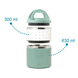 - Διαθέτει 2 ξεχωριστές θαλάμους (300ml & 630ml) για να μεταφέρετε διαφορετικά φαγητά χωρίς να αναμειγνύονται.