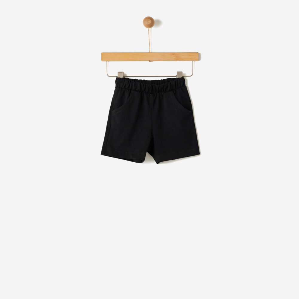 Σορτς βαμβακερό μακό σε μαύρο χρώμα με λάστιχο στη μέση και τσέπες στο πλάι για υπέροχες εμφανίσεις.
